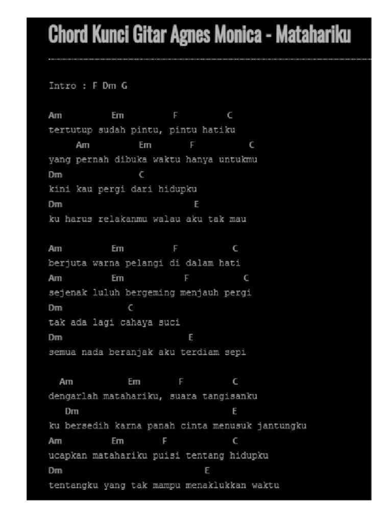 Chord Gitar Lagu Kunci Gitar Malaysia Lagu lagu malaysiaan atau lagu melayu ini dari dulu sampai saat ini cukup. Serunya lagi ramaja tahun 90an mencari chord dan kunci gitar di radio. Malaykord Tab Chords Easy Chord Lyrics.